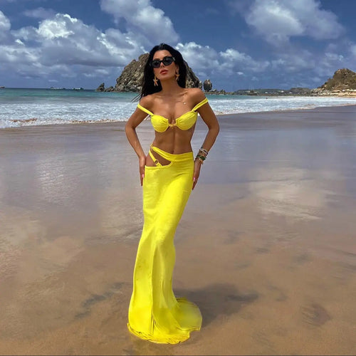 2024 3PC Shiny Bandeau Biquini With Cover Up Sexy Swimsuit Woman Swimwear Off Shoulder Swim Suit Star Bikini Bodysuit Beachwear