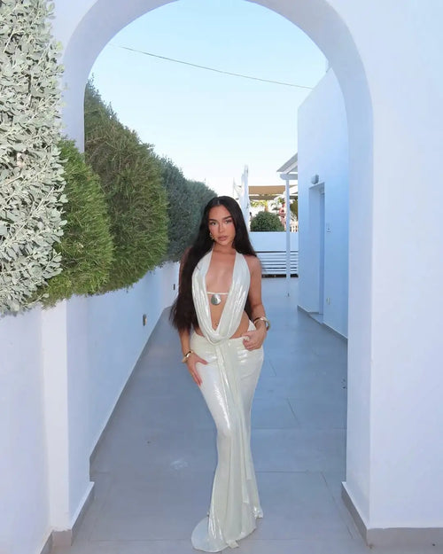 Asymmetry Split Backless Ruched Dress